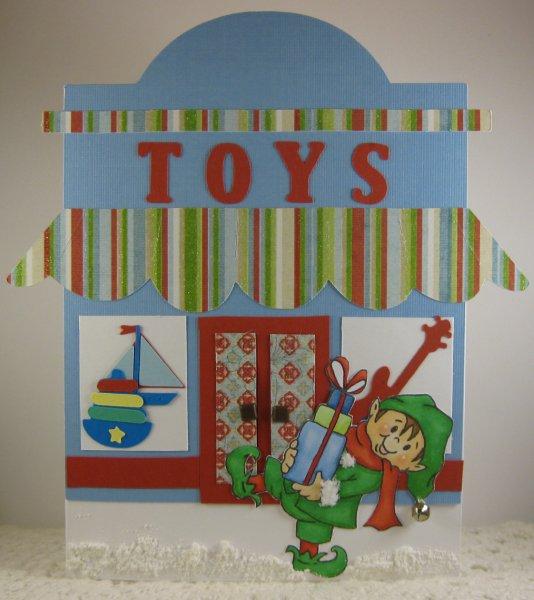 What a fabulous take on the sketch Julie!! Your 'toy shop' is FABULOUS and the elf is the perfect finishing touch! Thanks for playing along with us at Peachy Keen. Good luck!
